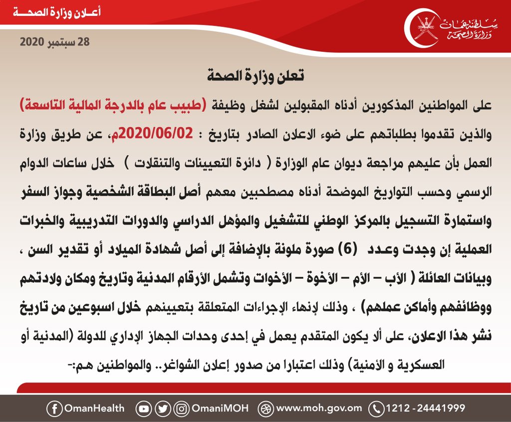 فقد نقلت وكالة الاخبار السعودية عن وزارة الصحة اهم الاعلانات الوظيفية لها والتابعه لوزارة الخدمة المدنية والاعلان عن اسماء المرشحين والمرشحات للوظائف الصحية للعام الهجري 1440 1441 ونشر تغريدة عبر حساب وزارة الصحة.