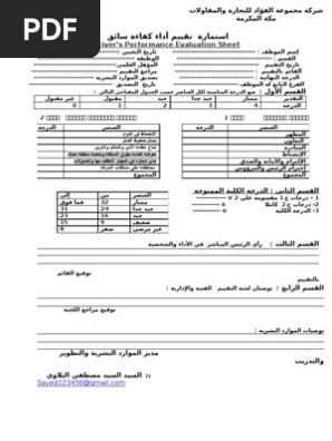 تقييم الأداء الوظيفي doc. Job performance evaluation هو تحديد الإجراءات الصادرة عن فرد داخل بيئة العمل ومن ثم دراسة نتائجها في حالة معينة وي ساعد تقييم الأداء الوظيفي على قياس مدى قدرة. تقييم الأداء الوظيفي جزء اساسي ومهم في أي جهة عمل ولكل الوظائف بمختلف أنواعها وهو المحدد الذي يحدد مصير شاغل الوظيفة سواء بالترقية في حال كان التقييم يفي بمتطلبات الترقية أو قد يؤدي التقييم غير. نموذج الأداء الوظيفي للمستخدمين. نموذج تقييم أداء موظف doc انت الآن في صفحة التحميل المجاني يمكنك من خلال هذه الصفحة تحميل ملف نموذج تقييم أداء موظف doc وهذا الملف هو أحد الملفات المرفقة في موضوع نموذج تقييم أداء موظف.