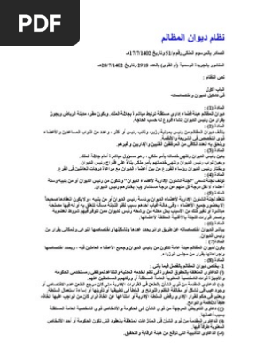 بعون الله تعالى نحن عبد الله بن عبد العزيز آل سعود ملك المملكة العربية السعودية. مل ظملا ناويد مظن ناويدلا ليكشت ـ لولأا بلا ىولأا ةدام ا وو يدم ةوو م اووو يو ايوو م ال ةةوووالم ملطةووي ا طوورم ةادت ماوواد ووضي ئاوولم ا ااووويد. نظام ديوان المظالم 1428 هـ بسم الله الرحمن الرحيم. الصادر بالمرسوم الملكي رقم م 78 بتاريخ 1428 09 19 هـ محدث حتى تاريخ 14 09 1441هـ.